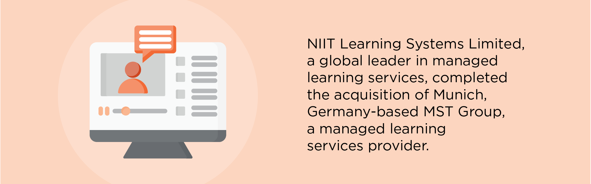 - NIIT Learning Systems Limited, a global leader in managed learning services, completed the acquisition of Munich, Germany-based MST Group, a managed learning services provider.