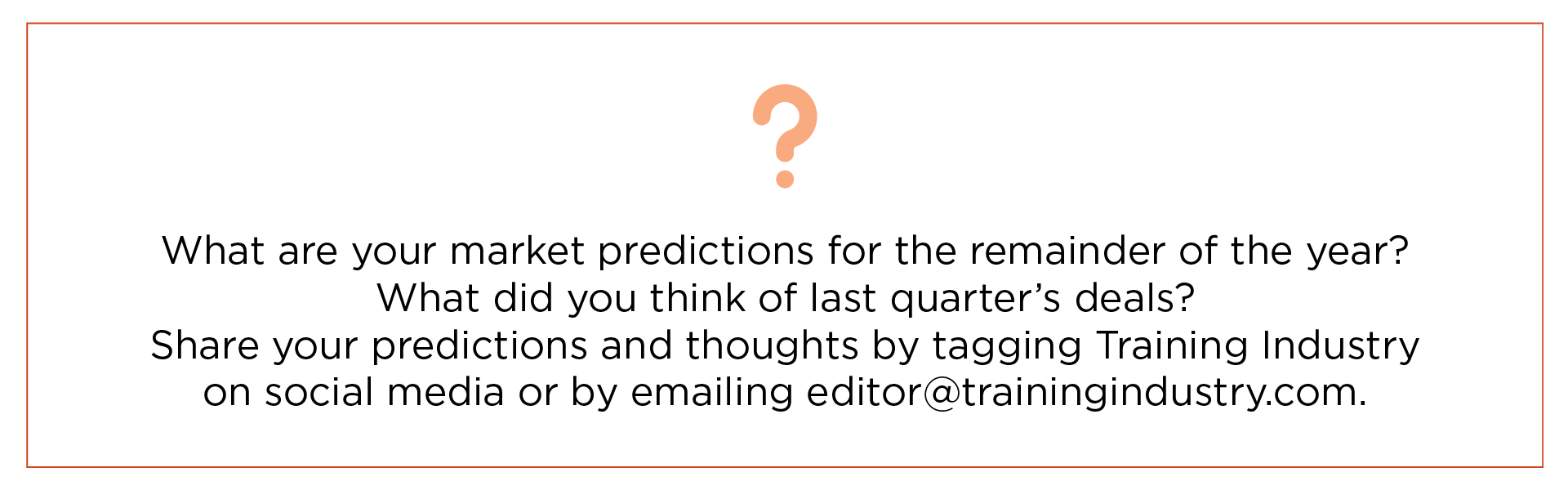 What are your market predictions for the remainder of the year? What did you think of last quarter’s deals? Share your predictions and thoughts by tagging Training Industry on social media or by emailing editor@trainingindustry.com.